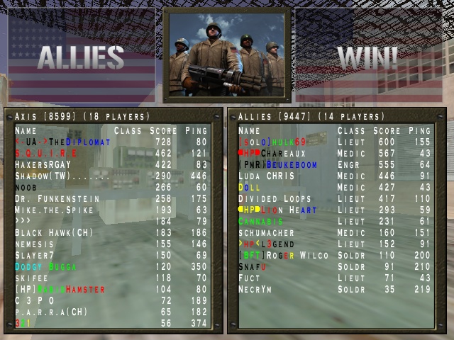 | Highest Score: 600 points. Player Name : [solo]hulk69 Map: Depot - Allies Server: Happy Penguin Classic |
